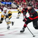 After Stankoven’s goal with 7:01 left gave the Hurricanes a 4-3 lead, Karlsson and Kindel scored 23 seconds apart for the Penguins.